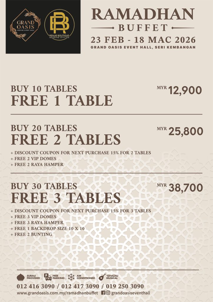 Satukan rasa, kenangan dan kasih sayang dalam satu pengalaman berbuka buffet ramadan yang cukup istimewa. Ramadhan Buffet 2026 menampilkan Citarasa Malaysia yang autentik, diinspirasikan daripada hidangan tradisional Melayu ,resipi warisan turun temurun yang penuh nilai nostalgia Ramadhan buffet.